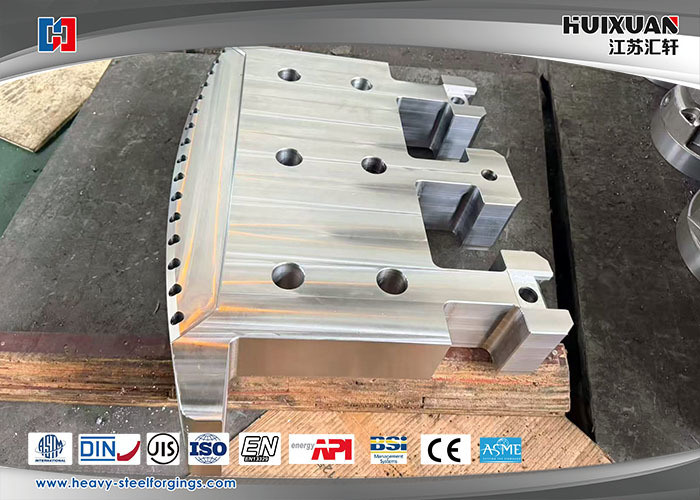The manufacturing process: For the magnetic pole pressure plates of large motors, casting or forging is often adopted, followed by mechanical processing to ensure their dimensional accuracy and strength.Forging process flow quality control: Raw material steel ingot into warehouse(test the chemical content) → Cutting→ Heating(Furnace temperture test) → Heat treatment after forging(Furnace temperture test) Discharge the furnace(blank inspection)→ Machining→ Inspection(UT,MT,Visal diamention, hardness)→ QT→ Inspection(UT, mechanical properties, hardness, grain size)→ Finish machining→ Inspection (dimension)→ Packing and Marking(steel stamp, mark)→ Storage Shipment